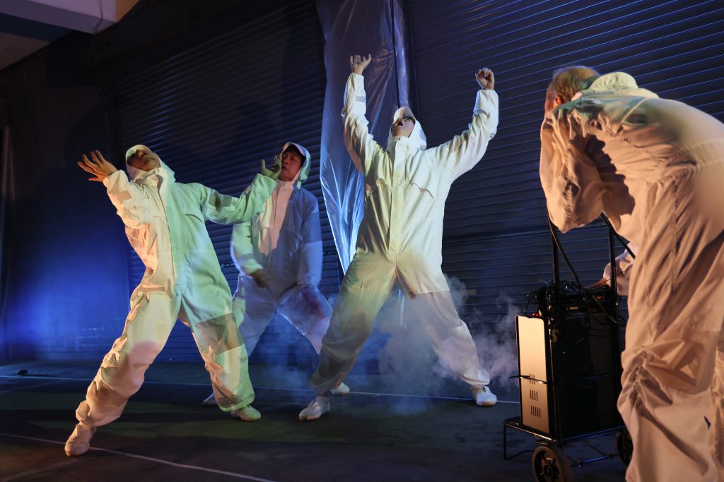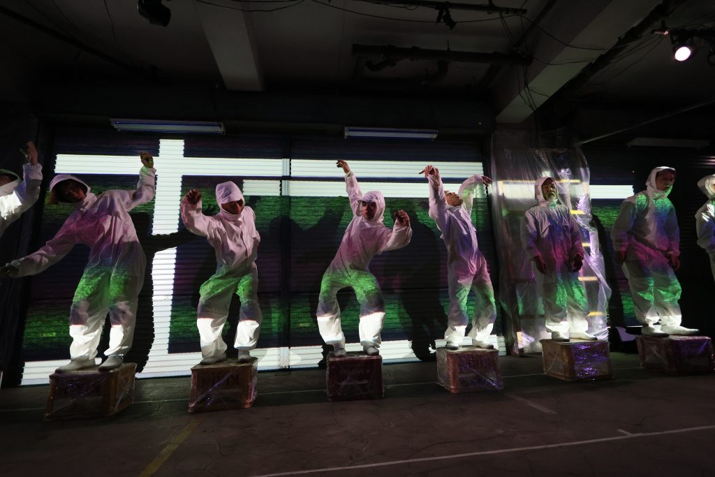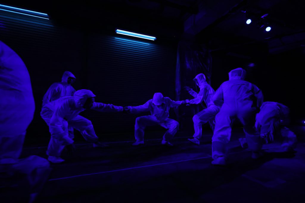 [演出・構成・振付]黒須育海 [出演]江口力斗、手塚バウシュ,黒須育海、香取直登、熊谷拓明、高橋優太、高田恵篤、鳥越勇作[ドラマトゥルク]鳥越勇作[舞台監督・美術]筒井昭善[照明]三浦あさこ[音響]牛川紀政[映像]青山健一[衣装]北村教子[音楽]エンノール2025.3.20.21.22.23 at 高円寺マテリアル photo : HARU